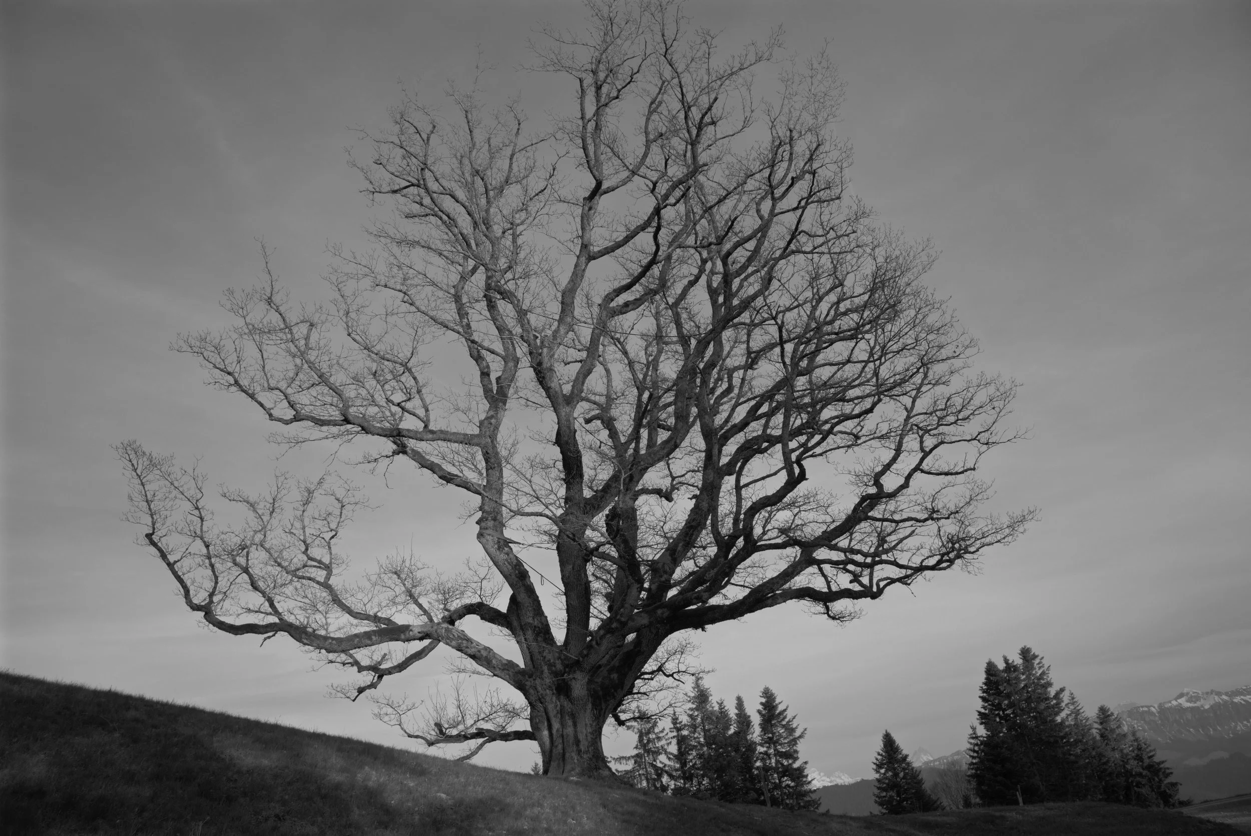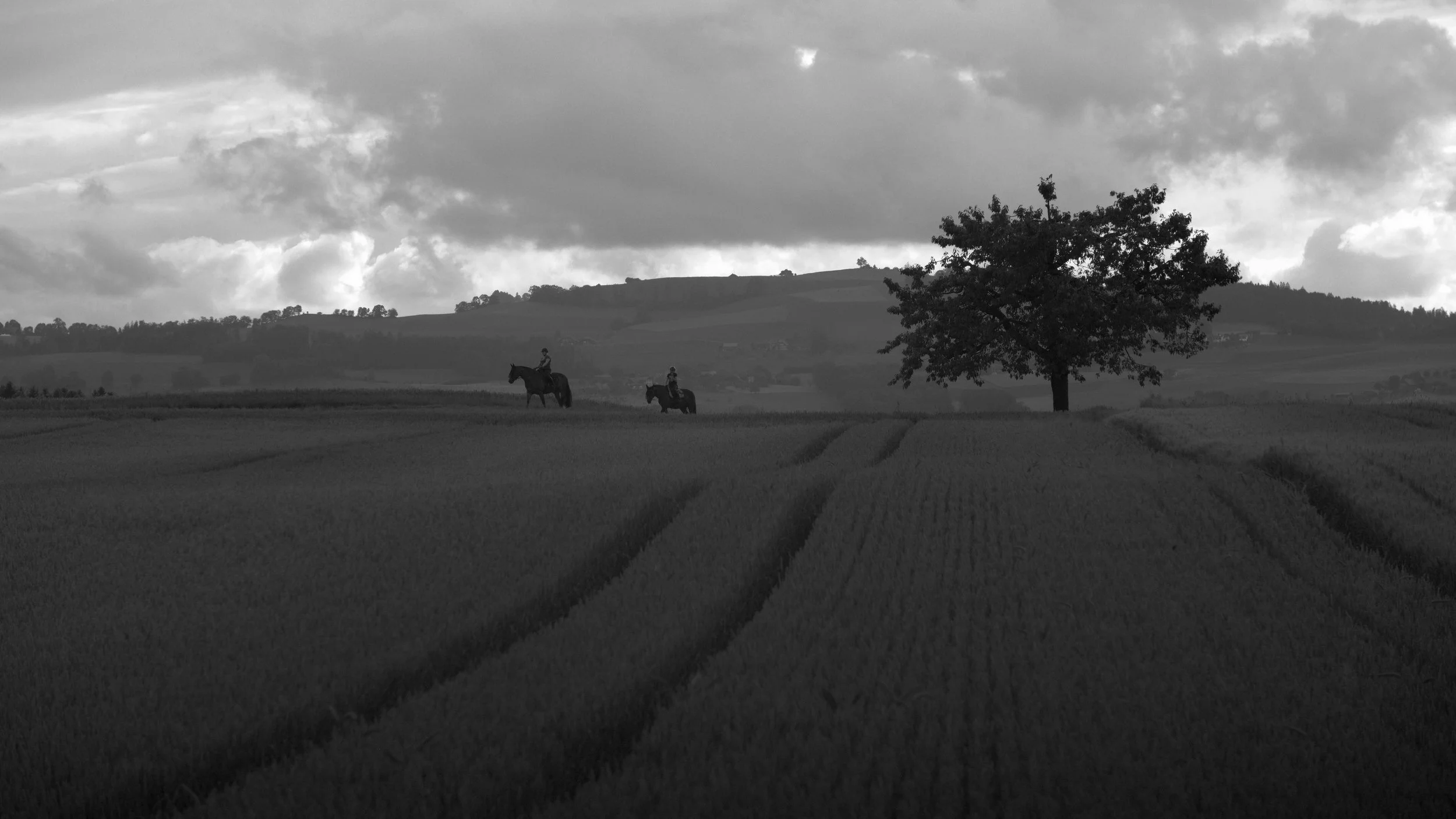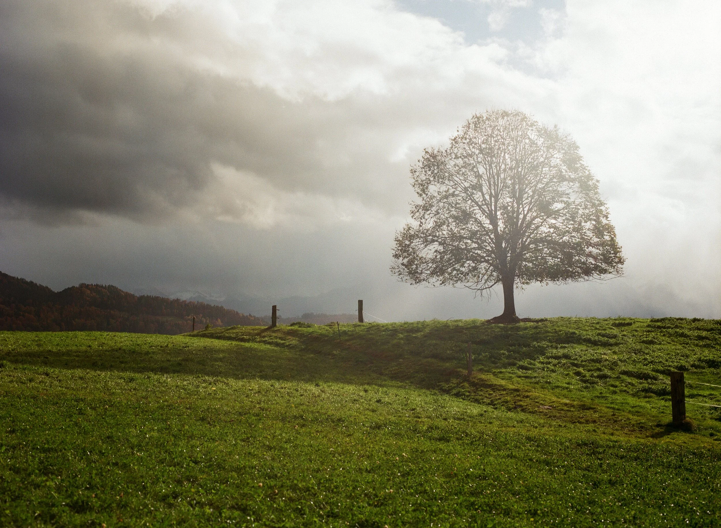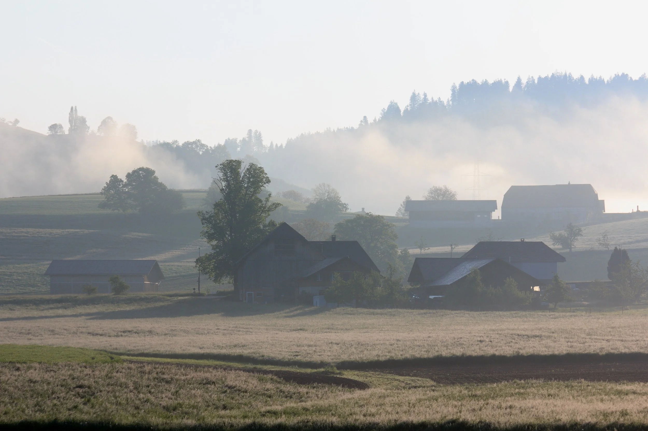 Die Reise beginnt am Rand des Waldes, wo ein altes Bauernhaus die Geschichten vergangener Generationen zu erzählen scheint. Mit seinen abgeblätterten Fassaden, den verwitterten Fensterläden und der rustikalen Dachkonstruktion steht es da wie ein stiller Zeuge einer anderen Zeit. Zwischen alten Gerätschaften und moderner Landwirtschaft verläuft der Weg – ein Übergang von gestern zu heute.