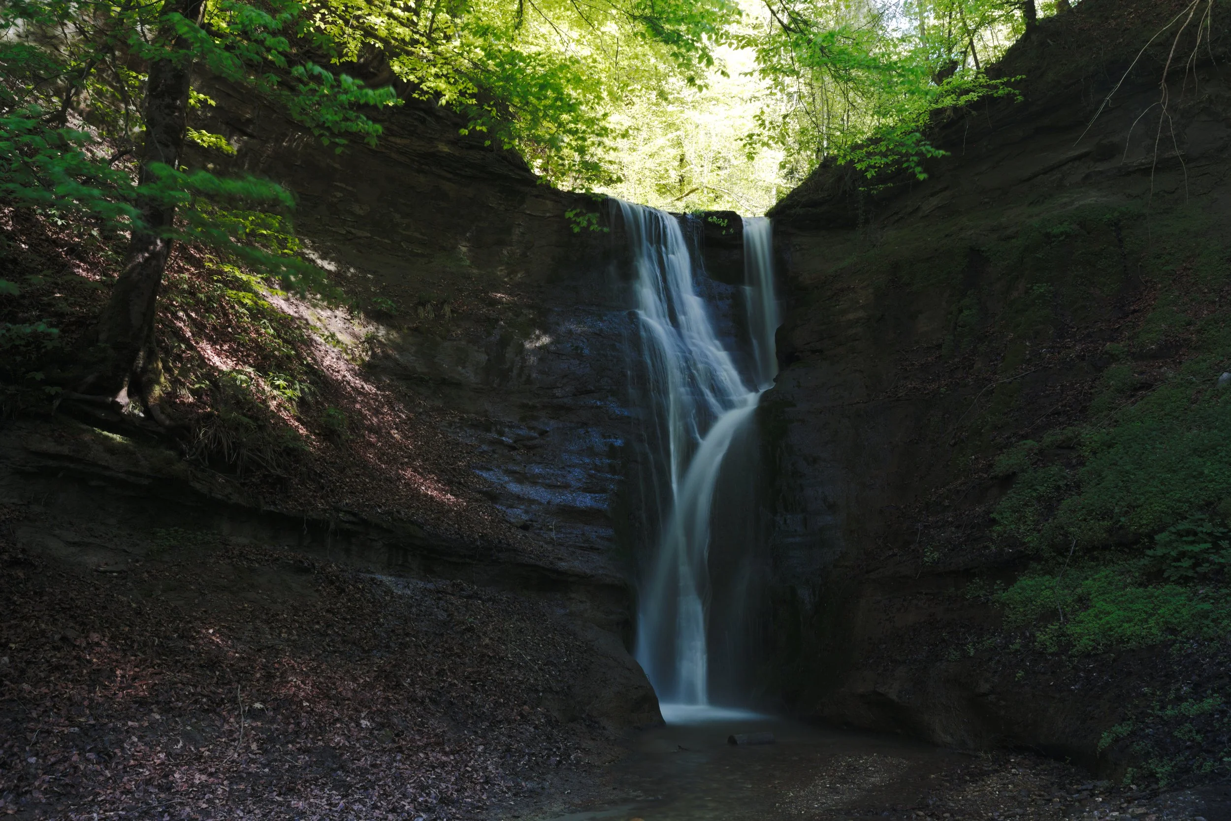 Und schließlich, nach wenigen Minuten durch das schattige Grün, öffnet sich der Wald – und dort stürzt er herab: der Mutzbachfall, an der Grenze zwischen dem Oberaargau und dem Emmental. Im vollen Glanz des Frühlings zeigt er sich, kühl und kraftvoll, eingehüllt in das frische Licht der jungen Blätter. Ein Ort, der sich nicht aufdrängt, aber bleibt. Leicht erreichbar, besonders für Familien – und doch ein kleines Paradies. Ich war allein unterwegs an diesem Tag, aber meine Gedanken waren bei meinen Jungs. Beim nächsten Mal nehme ich sie mit. Solche Orte muss man teilen. Solche Idyllen gibt es nicht mehr viele.